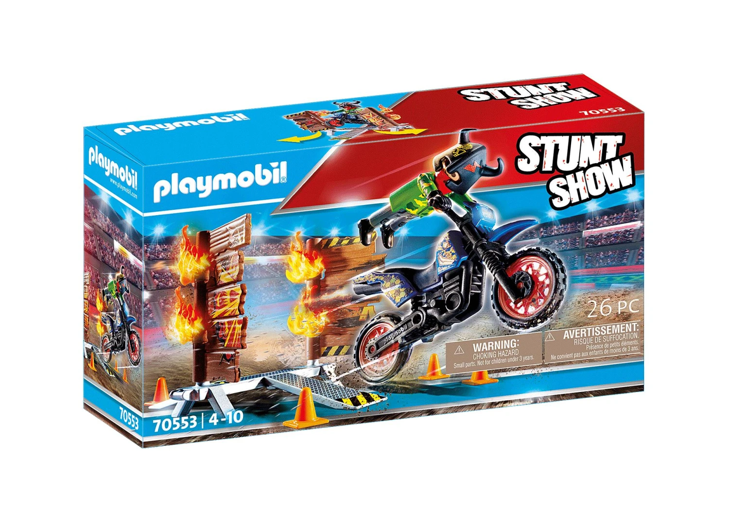 Wenn es um spektakuläre Stunts geht, steht der Motorradfahrer den Schwergewichten in nichts nach. Der unerschrockene Adrenalinjunkie schreckt vor keiner Herausforderung zurück. Mit voller Geschwindigkeit rast er über eine Rampe direkt auf eine brennende Bretterwand zu und schießt mit Schwung mitten hindurch. Dieser Stuntfahrer fürchtet weder Flammen noch Geschwindigkeit. Das ist nichts für schwache Nerven! Das Spielset enthält einen PLAYMOBIL-Motorradfahrer, ein Motorrad inkl. Sprungschanze und variabler Bretterwand, Helm, Handschuhe, Halstuch und weitere Extras.