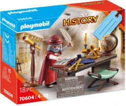 Der Astronom hat sich der Forschung über die Sterne und Planeten verschrieben. Jeden Tag blickt er durch sein Teleskop und hält nach neuen Sternen Ausschau. Was er wohl heute entdecken wird? Die praktischen PLAYMOBIL-Geschenksets in dekorativer Schachtel können individuell mit Namen beschriftet werden und sparen Geschenkpapier. Figuren: 1 Mann Zubehör: 1 Tisch, 1 Fernrohr, 1 Globus, 1 Hocker, 1 Buch, 1 Karte, 1 Sextant, 1 Zirkel, 1 Kerze mit Ständer, 1 Schreibfeder, 1 Mütze, 1 Umhang