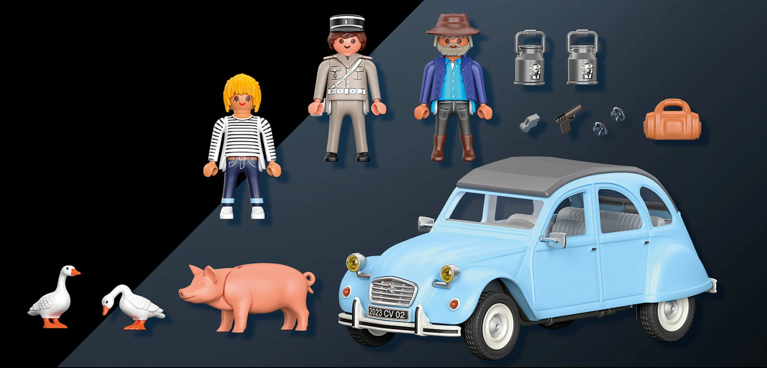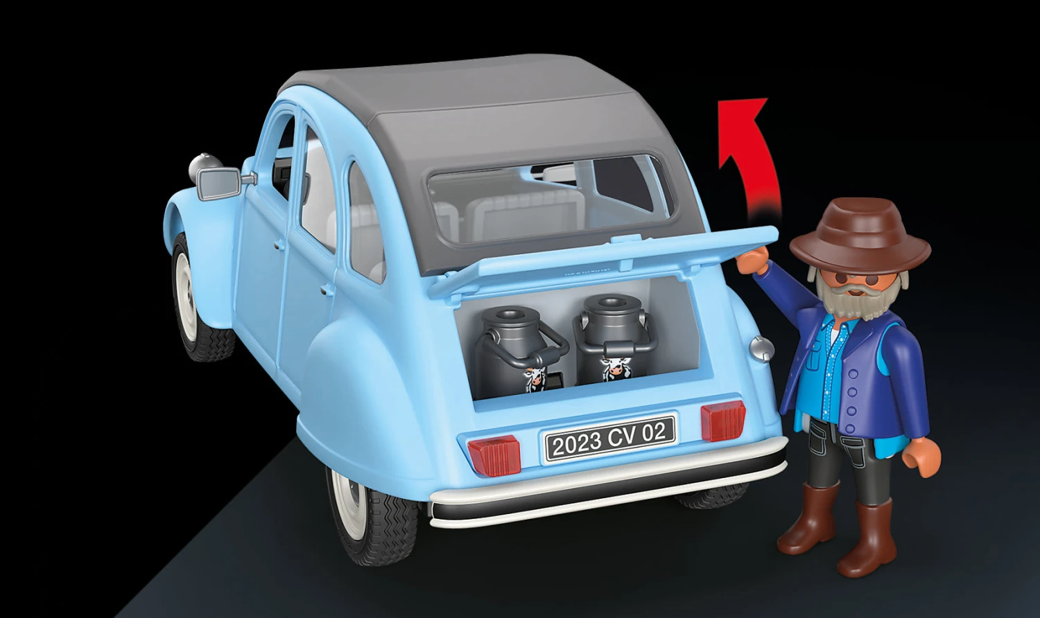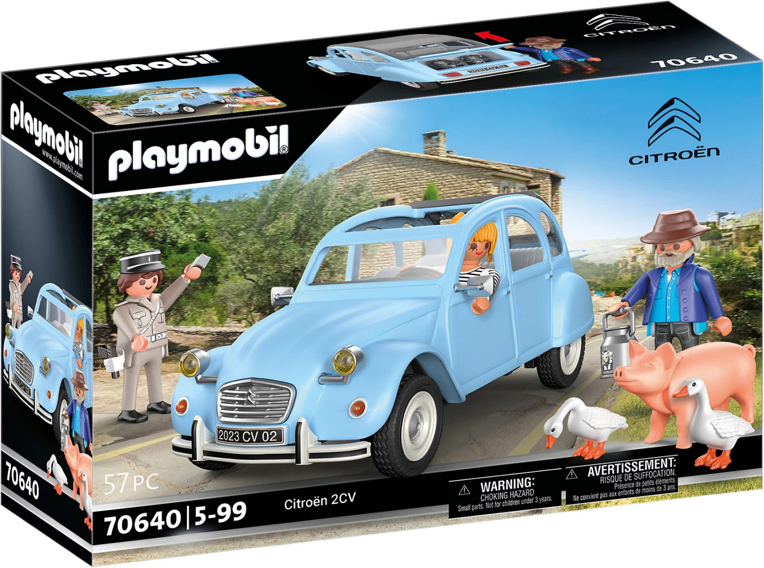 Mit dem Spielset PLAYMOBIL® Citroen 2CV (70640) kommt ein Lieblings-Klassiker der französischen Auto-Kultur und ein ikonisches Kultauto zum Spielen in die Kinderzimmer. Die „Ente“ begeistert mit vielen authentischen Details, wie einem abnehmbaren Verdeck und einer Heckklappe zum Öffnen mit viel Stauraum dahinter. Das erste Mal trat der legendäre Citroën 2CV 1948 in Paris vor die Öffentlichkeit. Zunächst konzipiert als landwirtschaftliches Fahrzeug entwickelte sich der leichte und geländegängige 2CV zu einem der bekanntesten und beliebtesten Automodelle (nicht nur) Frankreichs. Das Modell begeistert mit vielen Details und einer authentischen Innenausstattung. Mit dabei sind 3 Spielefiguren und niedliche Tierfiguren. Die Scheinwerfer können entweder gelb oder durchsichtig genutzt werden und mit den beiliegenden Stickern bekommt die „Ente“ einen ganz individuellen Look. Ob zum Spielen, Sammeln oder Träumen: Dieses Spielset ist ein perfektes Geschenk für alle Fahrzeug-Fans.