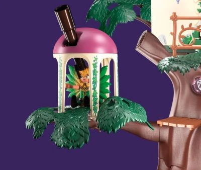 Tief im verwunschenen Feenwald steht der geheimnisvolle Gemeinschaftsbaum. Er ist nicht nur Wohnort der Feen, sondern auch sicherer Rückzugsort der magischen Wesen und ihrer befreundeten Seelentiere. Jede Feenart ist mit ihrem Symbol auf dem Gemeinschaftsbaum vertreten. Für fröhliche Plauderstunden treffen sich die Feen im gemütlichen Gemeinschaftsraum. Zum Beobachten der Sterne nutzen sie das Fernrohr des Observatoriums. Auf der seitlichen Holzplattform lädt der filigrane Pavillon mit seinen nachleuchtenden Lampions und kuscheligen Kissen und Decken zum Träumen ein. Im Turm des Gemeinschaftsbaumes befindet sich ein Sternenprojektor mit welchem ein zauberhafter Sternenhimmel an die Zimmerdecke projiziert werden kann. Die treuen Seelentiere haben unter der Baumwurzel einen lauschigen Unterschlupf. Hier ist ausreichend Platz, um zu fressen, zu spielen und sich auszuruhen. Das Spielfigurenset enthält eine Crystal Fairy mit Kristallschmetterling, eine Knight Fairy mit Wolf, einen Forest Fairy-Mann mit Luchs, einen Gemeinschaftsbaum mit drei Ebenen – Küche, Gemeinschaftsraum und Baumwurzel sowie Pavillon, Turmzimmer, Observatorium mit Fernrohr, Sternenprojektor und viele weitere Extras.