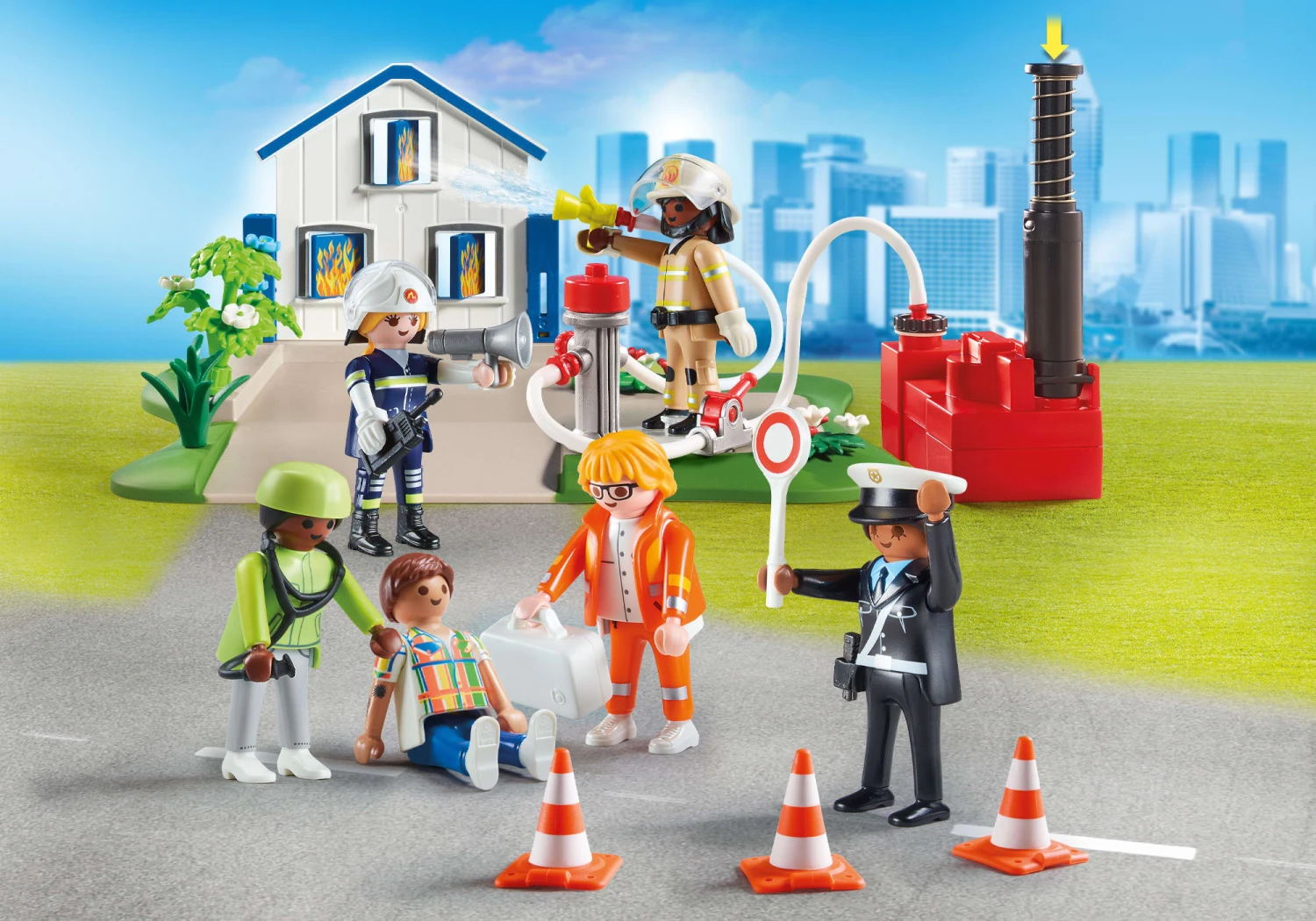 Mit den neuartigen My Figures von PLAYMOBIL können Kinder jetzt eine PLAYMOBIL-Welt ganz nach ihren Vorstellungen erschaffen, ihre Kreativität entfalten und dabei ihre individuelle Persönlichkeit entwickeln. Jedes My Figures Spielset enthält neben einer Spielszenerie mit Accessoires eine Tüte mit sechs Figuren in Einzelteilen, welche immer wieder neu zusammengestellt werden können. Arme, Beine, Körper und Accessoires sind im Nu getauscht und ergeben Spielfiguren, die so bunt sind wie das Leben. Durch die vielseitigen Kombinationsmöglichkeiten mit über 1000 Figurenkonstellationen fördern PLAYMOBIL My Figures ganz spielerisch Kreativität, Feinmotorik, Entdeckergeist und Persönlichkeitsentwicklung. Mit My Figures können Kinder ihre Spielwelt so gestalten, wie sie sie sehen und erleben, unabhängig von Stereotypen und Hautfarben. Das My Figures Rescue Mission Spielset lädt ein zu aufregenden Rettungsmissionen im Kinderzimmer. Egal ob Hausbrand, medizinischer Notfall oder Verkehrsunfall, die mutigen Helden des PLAYMOBIL-Rettungsteams sind immer im Einsatz und helfen, wo sie können. Auf ins Spielabenteuer!