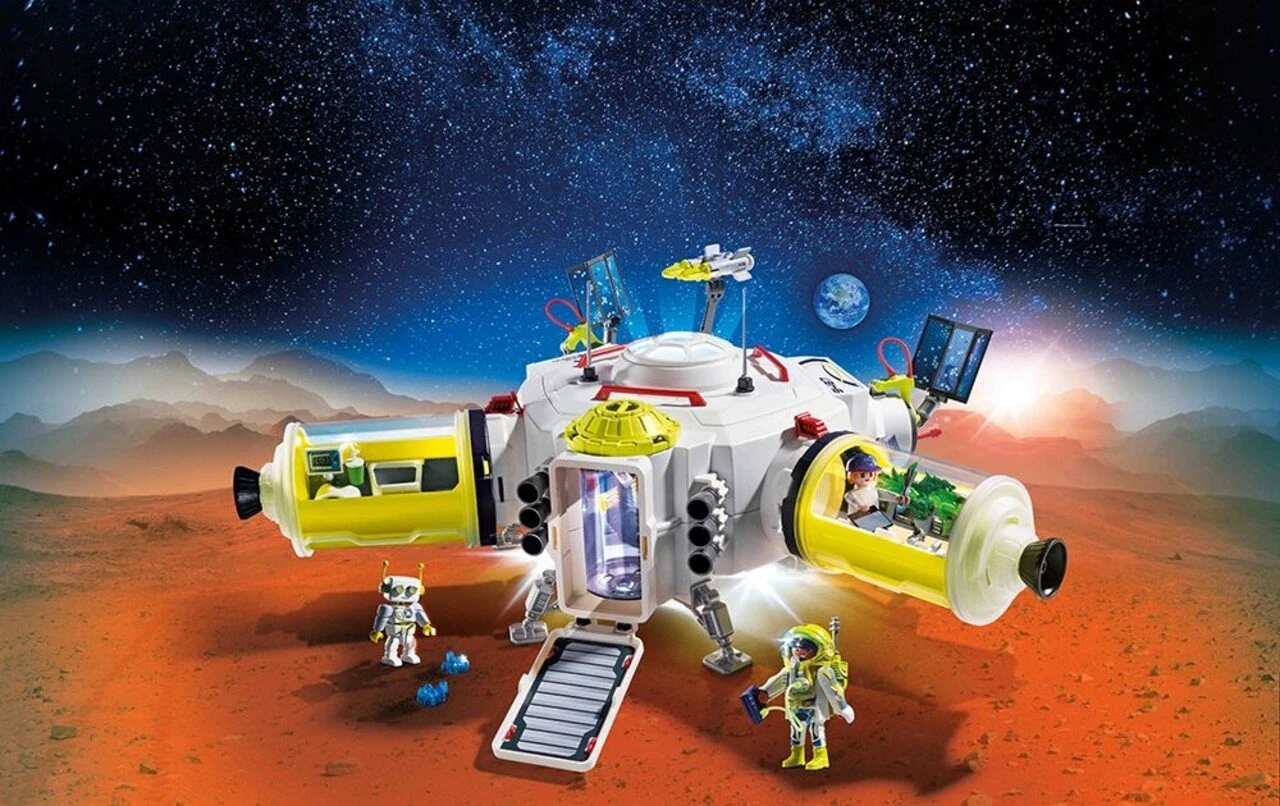 Figuren: 1 Astronaut, 1 Astronautin, 1 Roboter; Zubehör: 1 Mars-Station, 1 Doppelwaffe, 2 Geschosse, 3 Platinen, 1 Fitnessgerät, 1 Astronauten-Rucksatz, 1 Bedienelement mit Verbindungskabel, 1 Radiowecker, 1 Laptop, 1 Mikroskop, 1 Videorecorder, 1 Taschenlampe, 1 Set Werkzeuge (6-teilig), 1 Set medizinische Instrumente (4-teilig), 2 Zahnbürsten, 2 Gesteine, 1 Tube, 3 Trinkbecher, 1 Salatköpfe, 5 Safttüten, 4 Lebensmitteltüten, 6 Riegel, 2 Astronautenhelme mit Visier, 2 Paar Astronauten-Armaufsätze, 2 Kappen, 1 Stirnlampe