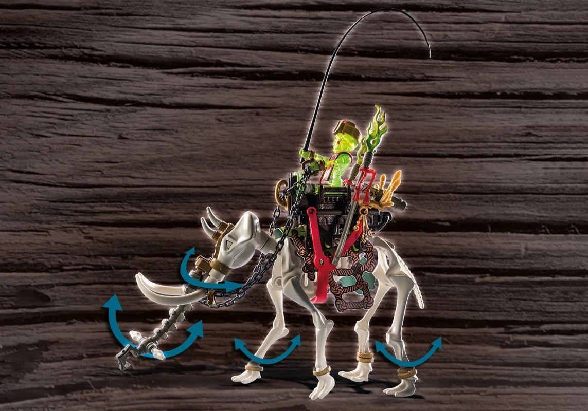 – Mithilfe des Sattels kann eine Figur auf dem Mammut reiten. Zwei Fackelspeere können seitlich am Sattel befestigt werden.