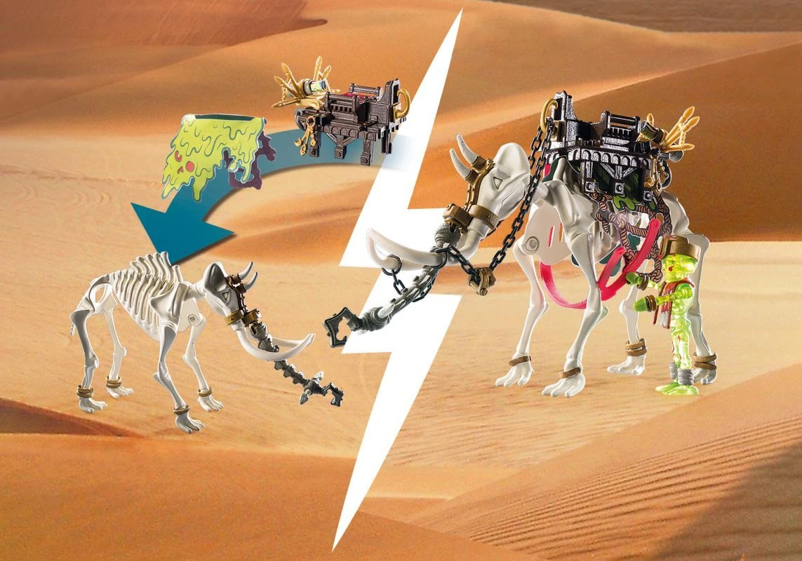 „Achtung der General der Skelettarmee greift mit seinem bedrohlichen Kampfmammut an. Doch die tapfere Gwynn ist gleich mit ihrer Steinschleuder zur Stelle, um sich dem Unhold in den Weg zu stellen. Wird es ihr gelingen, den General aufzuhalten?