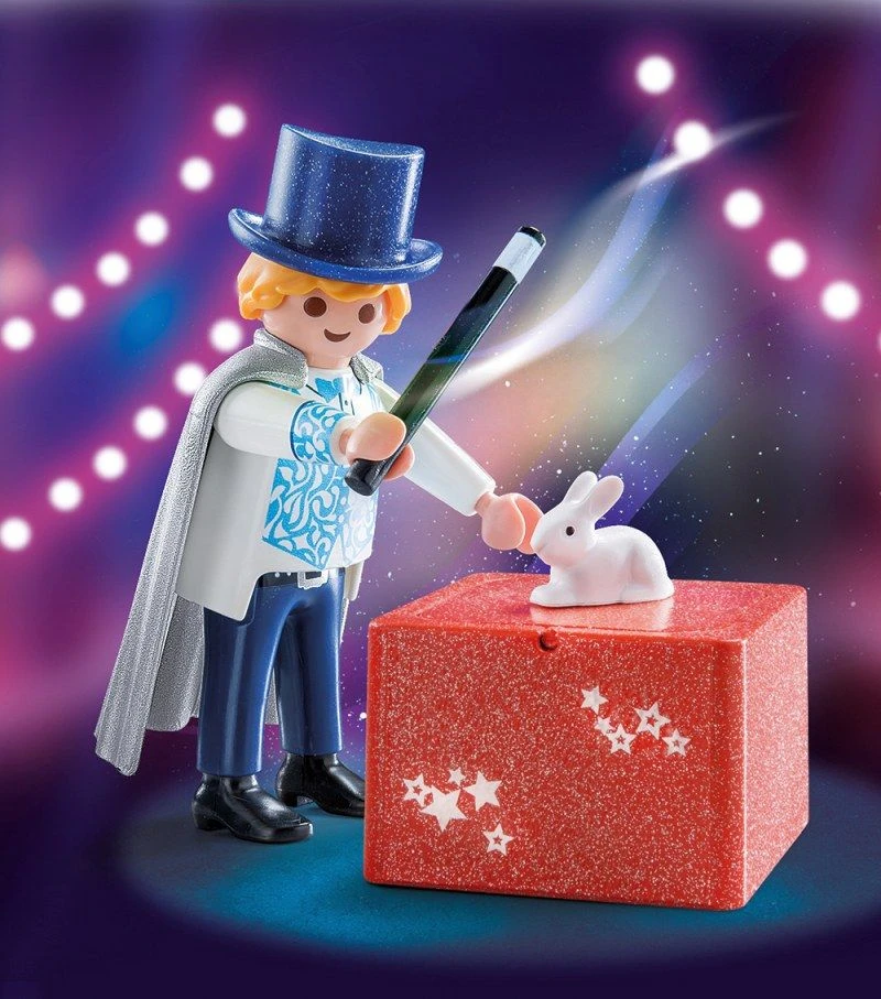 Für seine nächste große Show übt der Zauberer einen neuen Trick ein. Hoffentlich klappt es und das Kaninchen verschwindet nicht nur, sondern taucht auch wieder auf. Übung macht den Zaubermeister!PLAYMOBIL® Special Plus Sets garantieren extra viel Spielspaß zum kleinen Preis. Zum Sammeln, Spielen und Verschenken!